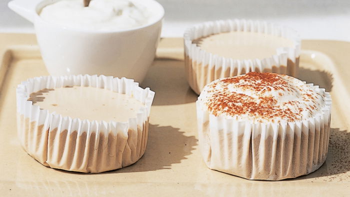 Answered by Lindsey: Hello, We used Lakeland greaseproof muffin cases 50mm by 44mm. The shape changes when the mixture goes into the lined ramekin. Best wishes Lindsey Cappuccino Cheesecakes