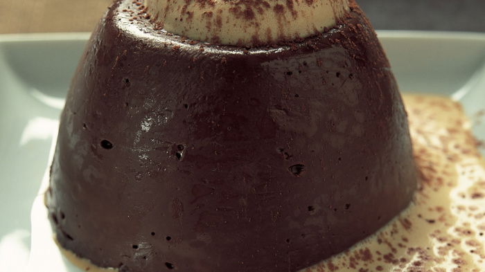 Give it a good whisk then leave the mixture to cool.If you want, you can speed this process up by standing the pan in a basin of cold water and stirring occasionally as it cools. After that, divide the cooled chocolate mixture between the oiled pudding basins, filling them to around three-quarters full. Now place them on a tray, cover with clingfilm and chill in the fridge for at least 4 hours.