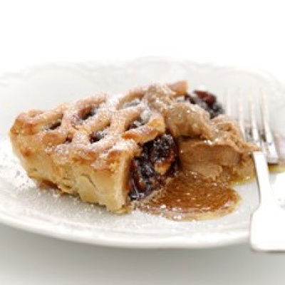 I always find the best way to do this is to cut them first into quarters, then pare off the peel with a potato peeler and slice out the cores. Now cut them into thickish slices and toss them in a bowl with the mincemeat, sugar, cinnamon and ground cloves, then place them in the baking dish and put to one side. Next, make the crumble, which couldn't be simpler as it's all made in a processor. All you do is place the butter, sifted flour, cinnamon and sugar in a food processor and give it a whiz until it resembles crumbs.