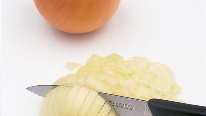 The best way to do this is to heat the groundnut oil in a deep-fryer (to180˚C/350˚F) and melt the butter and oil for the liver in a frying pan simultaneously, so that you can cook both the liver and the onions at more or less the same time.