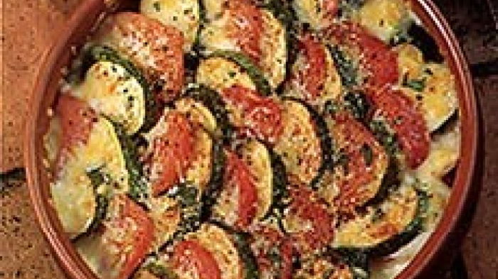 This is a very quick and easy vegetarian supper dish for two people, especially good if you grow your own tomatoes and courgettes and have a glut to use up.