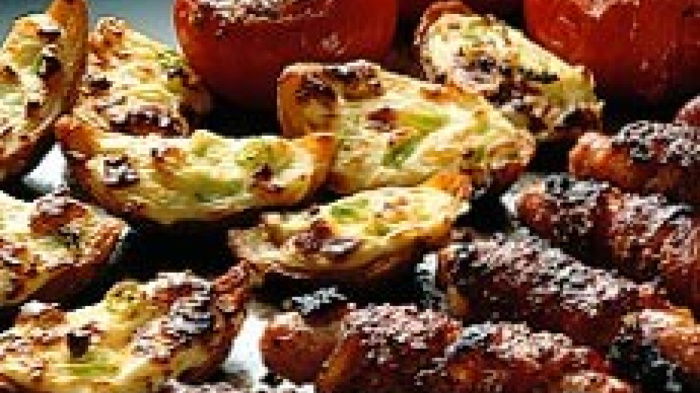 Basically it's bacon, sausage, tomatoes and potatoes but with a different twist – the kind of meal that, once you get hooked on it, could become a regular staple. It's dead simple, all gets cooked in one oven, takes little more than 30 minutes to prepare and I don't think you'll have any problems serving it to anyone within an age range of three to 103!
