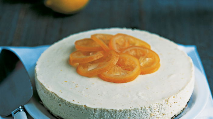 This is a very light, fluffy lemony cheesecake which, if you serve it with a Confit of Lemons, makes a delightfully refreshing end to a rich meal.