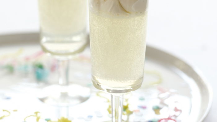 Leave to cool, cover and chill in the fridge until the jelly is just on the point of setting - this should take 1- 1½ hours, but keep an eye on it. Then give it a good whisk. After that uncork the champagne, measure out 275ml and pour it into the jelly. Stir once or twice to blend everything, then ladle gently into the serving glasses (being gentle means trying to conserve as many bubbles as you can).