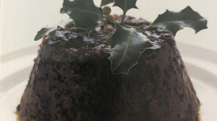 To serve, remove the pudding from the steamer and take off the wrapping. Slide a palette knife all round the pudding, then turn it out on to a warmed plate. Place a suitably sized sprig of holly on top. Now warm a ladleful of brandy over direct heat, and as soon as the brandy is hot ask someone to set light to it.