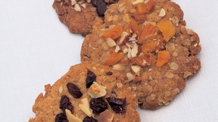 But you don't have to tiptoe around to enjoy these fantastically moreish biscuits for this recipe is, quite literally, kids' stuff – one of the quickest, easiest, and simplest recipes of all, and perhaps the best news is that the basic recipe is supremely adaptable, so you can alter it to more or less any combination of nuts, fruits, and spices that you want. Other options are Cherry and Flaked Almond Crunchies, Apricot and Pecan Crunchies or Choclate Almond Crunchies - see end of method for quantites.
