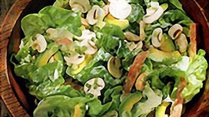 The stars in question here are avocado, French garlic sausage, mushroom and lettuce, with a lovely, garlicky, soured cream dressing.