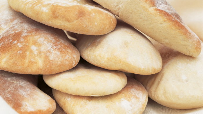 Meanwhile, prepare the next three portions and when the first ones are ready, remove them from the oven and wrap them in another tea cloth. (If they're allowed to cool without this, they get too crisp, and a pitta should be soft, not crunchy.) Now just carry on cooking and wrapping the rest of the pittas. It's nice to serve them fresh from the oven with Hummus or Tunisian Aubergine Salad (see related recipes below), or, if you're making them in advance, warm them through briefly in the oven before serving.