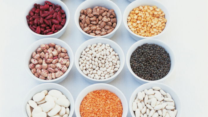 Remove them from the heat, cover and leave on one side to soak for about one hour. After that bring them to the boil again, cover and simmer for 30 minutes; then strain the beans, reserving all their liquor. While all this is happening, you can very carefully pick over the lentils then put them in a sieve with the pearl barley and rinse thoroughly under the cold water tap. Transfer them to a bowl, pour some boiling water over them to cover and leave them to soak for half an hour; then drain them, this time discarding the water. Now heat the butter until frothy in a casserole and gently soften the onion, garlic, carrot and celery (but don't brown them). Then add the tomatoes and puree, and stir in the drained lentils and barley, and the drained beans and their reserved cooking liquor (made up to 275ml with fresh water). Now sprinkle in the chilli powder, add the bay leaf, bring to simmering point, cover and continue to simmer for half an hour.