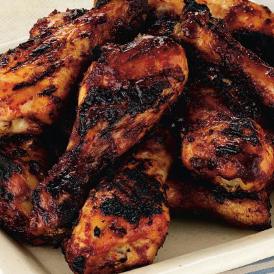 An incision between the skin and the thigh, using a small sharp knife, will help to pull the skin off very easily. Then, in a small basin, mix the three mustards, egg yolks and cream until well blended and smooth. Mix the breadcrumbs and herbs together, then place the mixture on a square of greaseproof paper and some flour on another piece. Season each chicken thigh with salt and pepper and dust with flour, then dip in the mustard mixture to coat it evenly, and finally, roll the pieces in the breadcrumbs and pat the coating on firmly. Place the chicken thighs on a plate, cover and chill for 3-4 hours so that the mustard flavour can develop and the coating become firm.