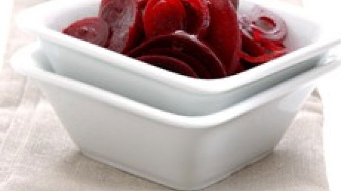 Perhaps that's because the strong malt vinegar of the commercial pickling masks the true flavour of the beetroot, or maybe it's because of overboiling. But when prepared in the following way it provides a wonderfully flavoured and textured accompaniment to cold cuts at Christmas time. To sterilise the jar, wash it thoroughly in warm soapy water, rinse and heat in a moderate oven for 5 minutes.