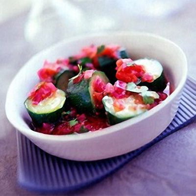 Meanwhile, place the tomatoes in a heatproof bowl and pour boiling water on to them. After exactly a minute, remove them from the water and slip off their skins (protecting your hands with a cloth if the tomatoes are hot), then halve them, squeeze out the seeds and chop them into small pieces. You can watch how to skin tomatoes in our Cookery School Video on this page.