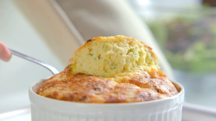 However, if you don't have any left over, boiling some specially will be well worth it. This will make a very fine supper dish for two vegetarians or for those who often give meat a skip. The potatoes give the souffle a lovely crusty top with a squidgy inside. A salad with a lemon dressing would be a good accompaniment and a dollop of chutney on the side wouldn't go amiss.