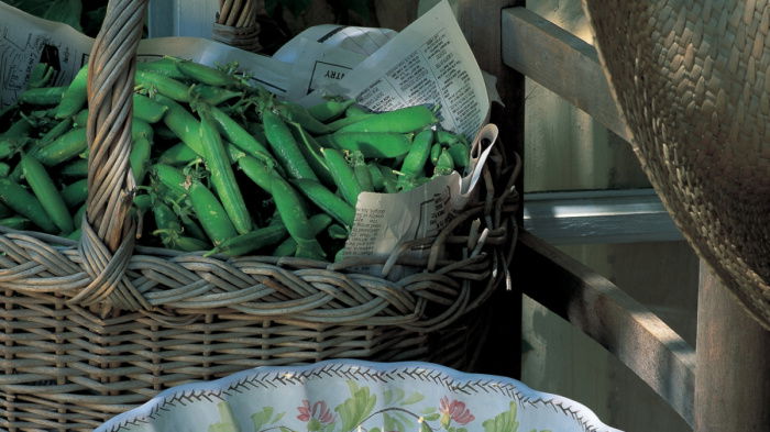 This soup is a lovely dark green colour and has all the wonderful ingredients and flavours of peas à la Française – peas, spring onions, lettuce and bacon – blended into a velvety smooth soup.
