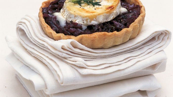 These are then spooned into crisp cheese pastry cases and topped with melted goats' cheese and sage. Serve them as a special first course with some balsamic-dressed salad leaves, or 2 tarts per person make a brilliant light lunch.