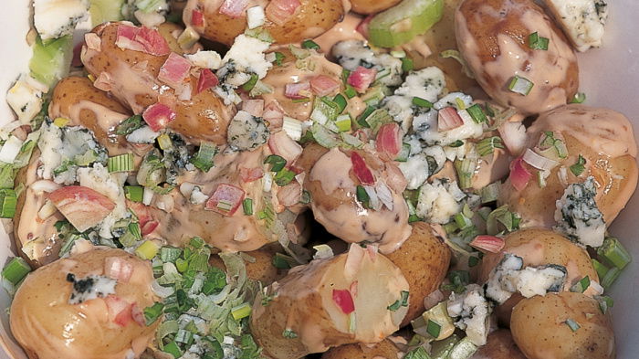 This potato salad, with creamy, piquant Roquefort and the added crunch of celery and shallots, is good to eat all by itself, but I also like to serve it with cold cuts at a buffet lunch.