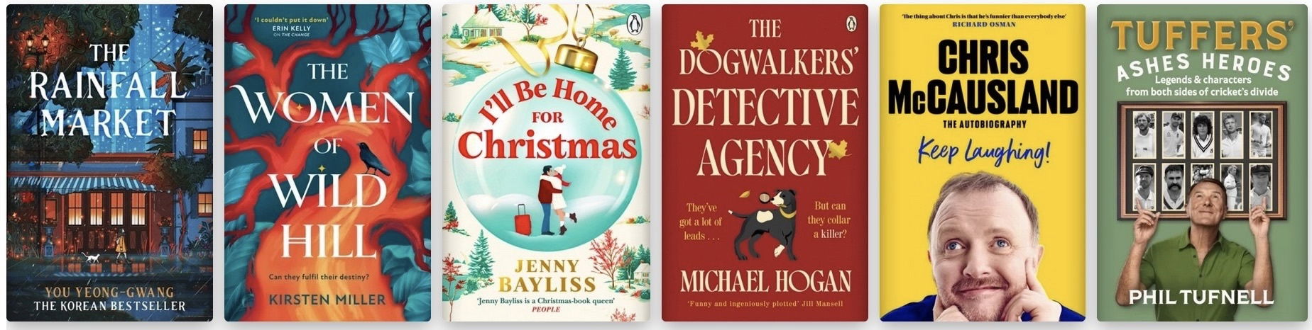Dive into a murder mystery with The Dogwalker’s Detective Agency, get swept up in festive romance with I’ll Be Home for Christmas, or explore magical worlds in The Rainfall Market and The Women of Wild Hill. For laughs and inspiration, Keep Laughing is Chris McCausland’s heartwarming memoir, while cricket fans can relive the magic of the Ashes with Phil Tufnell’s Tuffer’s Ashes Heroes.